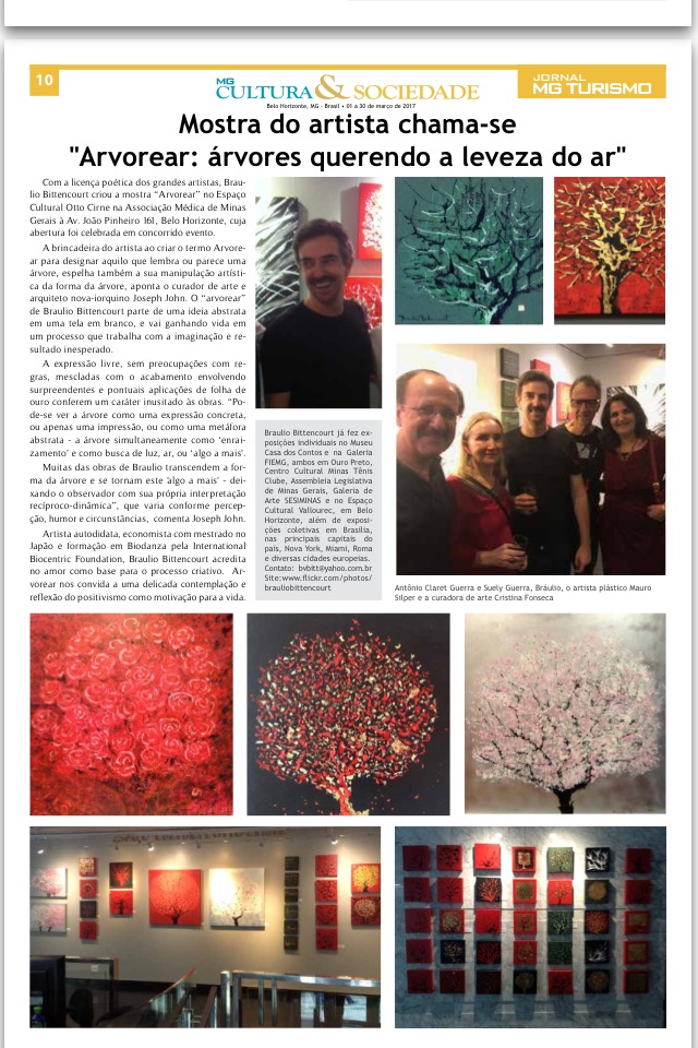Cobertura do Jornal MG Turismo e Cultura da exposição Arvorear realizada em fevereiro de 2017 na Galeria Otto Cirne na Associação Médica de Minas Gerais – AMMG, Belo Horizonte.