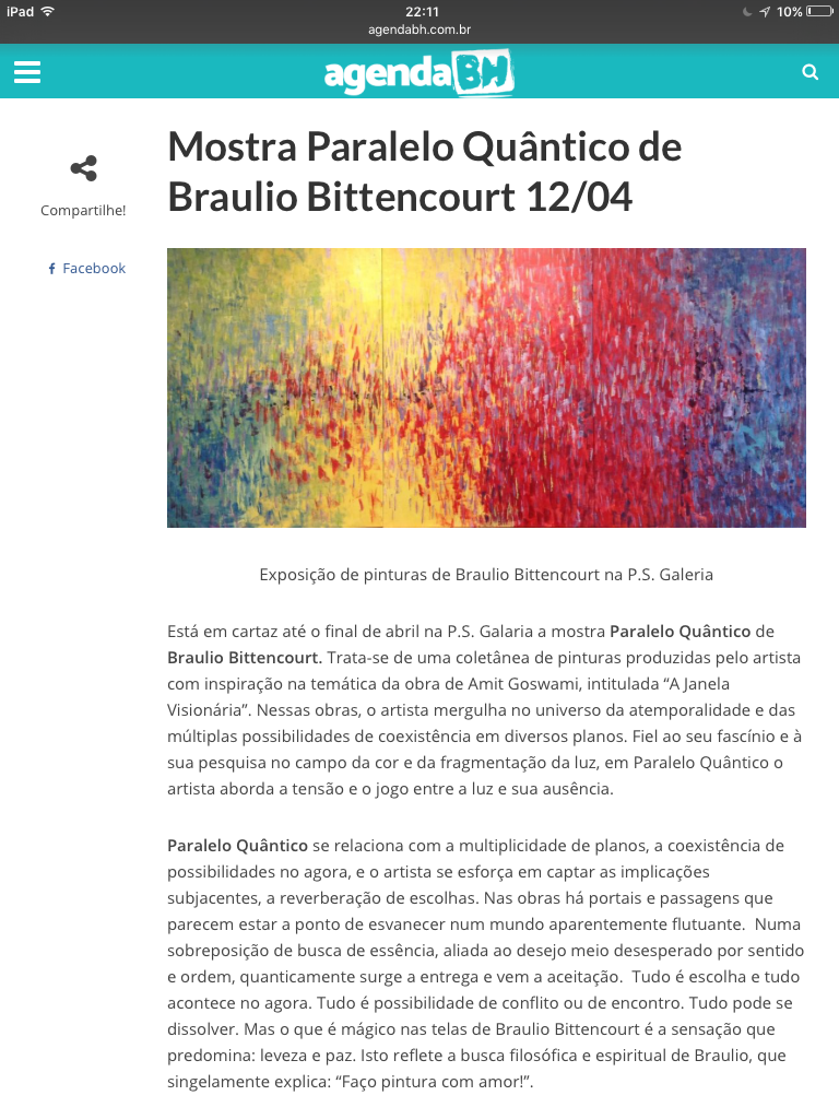 Exposicao Paralelo Quântico em cartaz na Galeria PS, à Rua Antônio de Albuquerque, Belo Horizonte